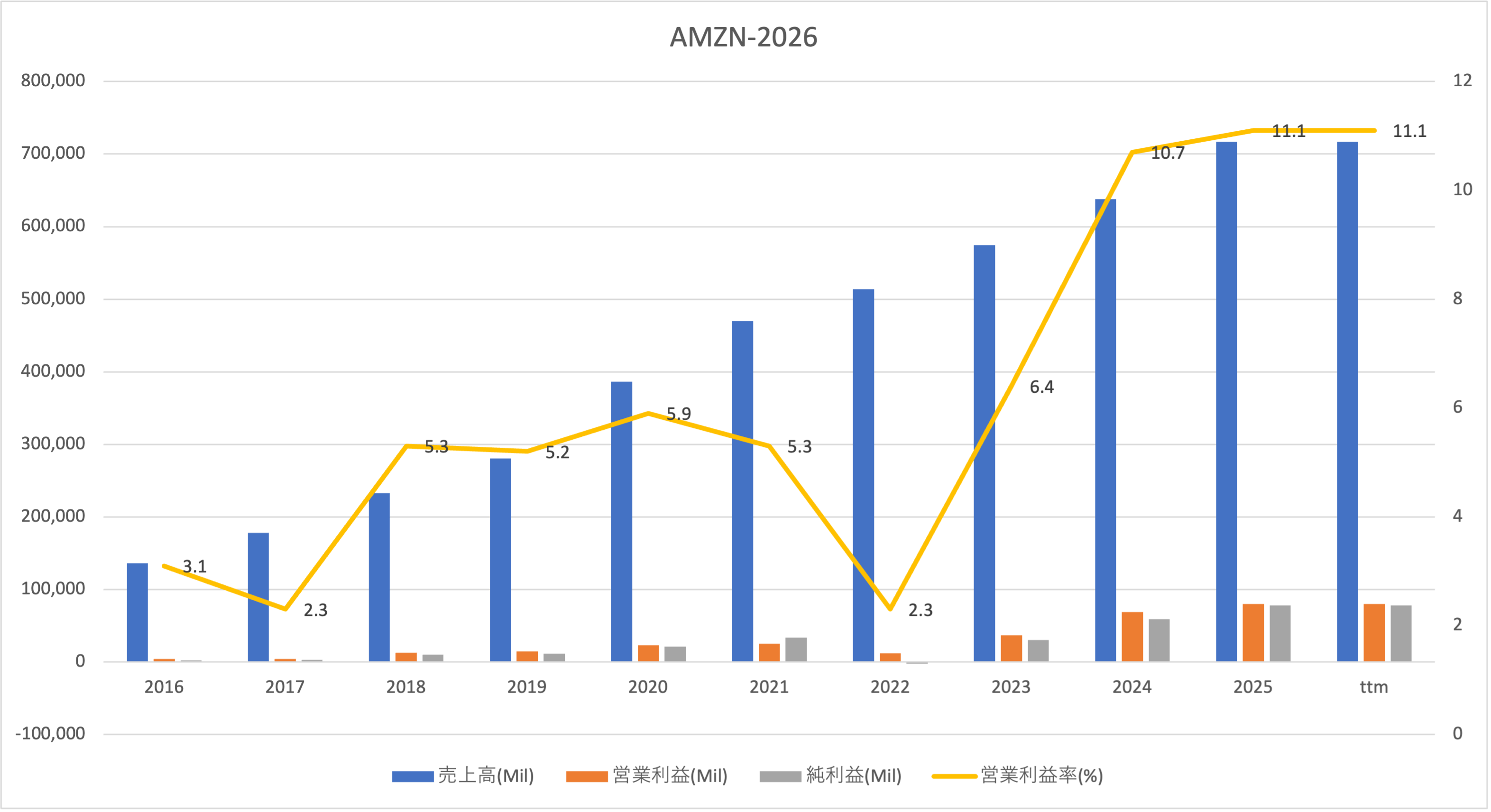 アマゾン(AMZN)四半期決算|25年4Qは+13%と横ばい 3件のビュー