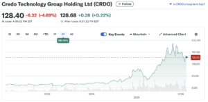 クレドのAEC(アクティブ電気ケーブル)は、AIデータセンターに供給しています。同社は、AEC市場で支配的な世界シェアを獲得しています。この分野での競合は、ブロードコム(AVGO)とマーベル(MRVL)ですね。ただし、ブロードコムとマーベルがスイッチチップに強いのに対し、クレドはそれらを繋ぐインターコネクトに強みがあります。