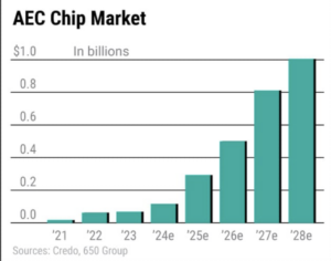 市場調査会社650 Groupによると、AECチップ市場は23年の0.68億ドルから、28年には10億ドル規模に達すると言います。