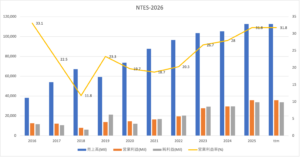 ネットイース(NYSE:NTES、HKG:09999)は、世界7位の中国のゲーム企業、中国国内ではテンセントに次ぐ2位です。25年3Qの売上成長率は前年比+8.2%、4Qは+2.9%に減速しています。